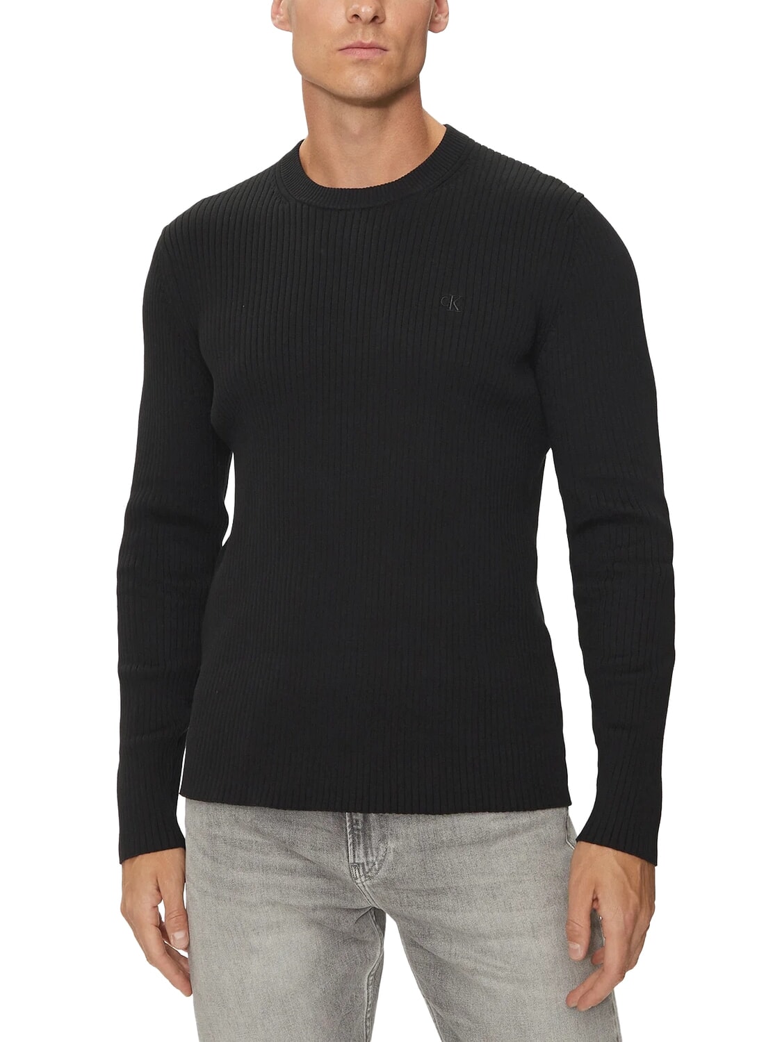 CK JEANS Slim Fit gerippter Pullover mit Rundhalsausschnitt