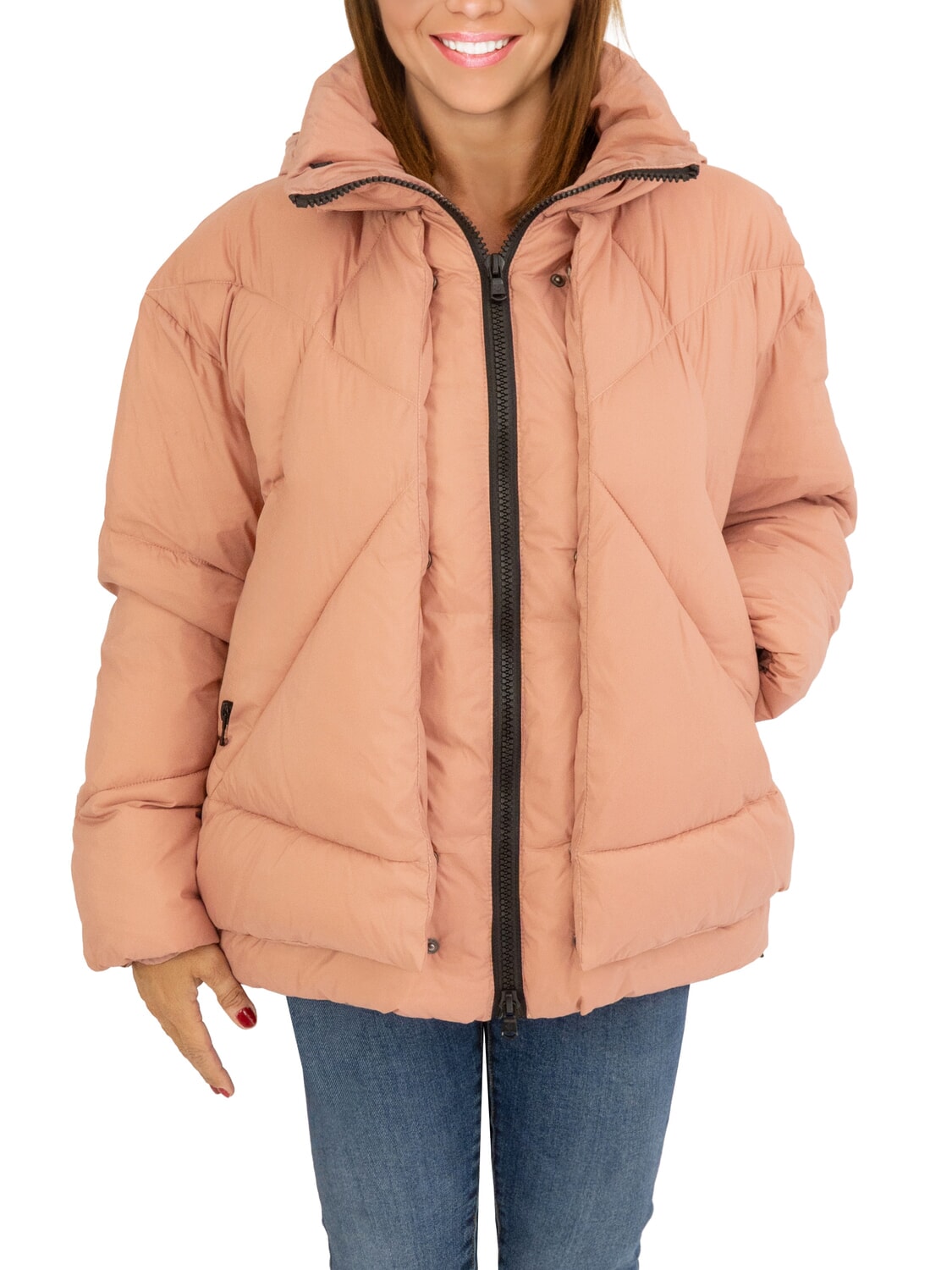 EUGENIE Kurze Satin-Daunenjacke mit Kapuze