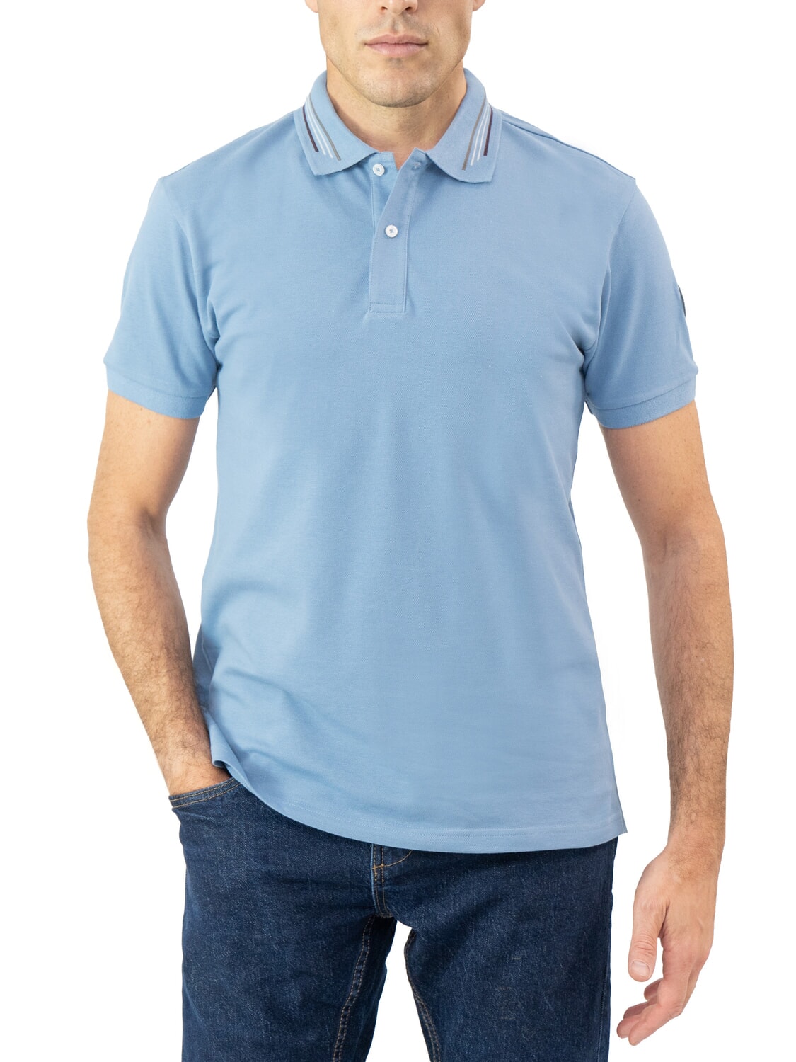 Gerippter Kragen mit kontrastierenden Streifen