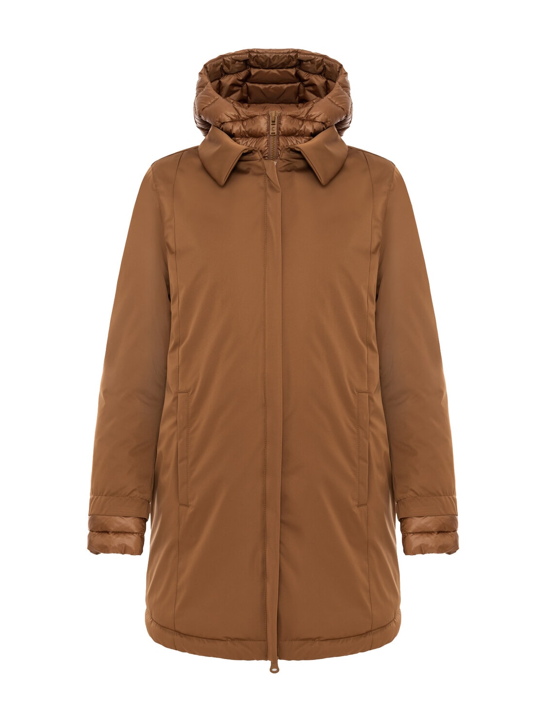 SURROUNDING Lange, wattierte Jacke mit Kapuze