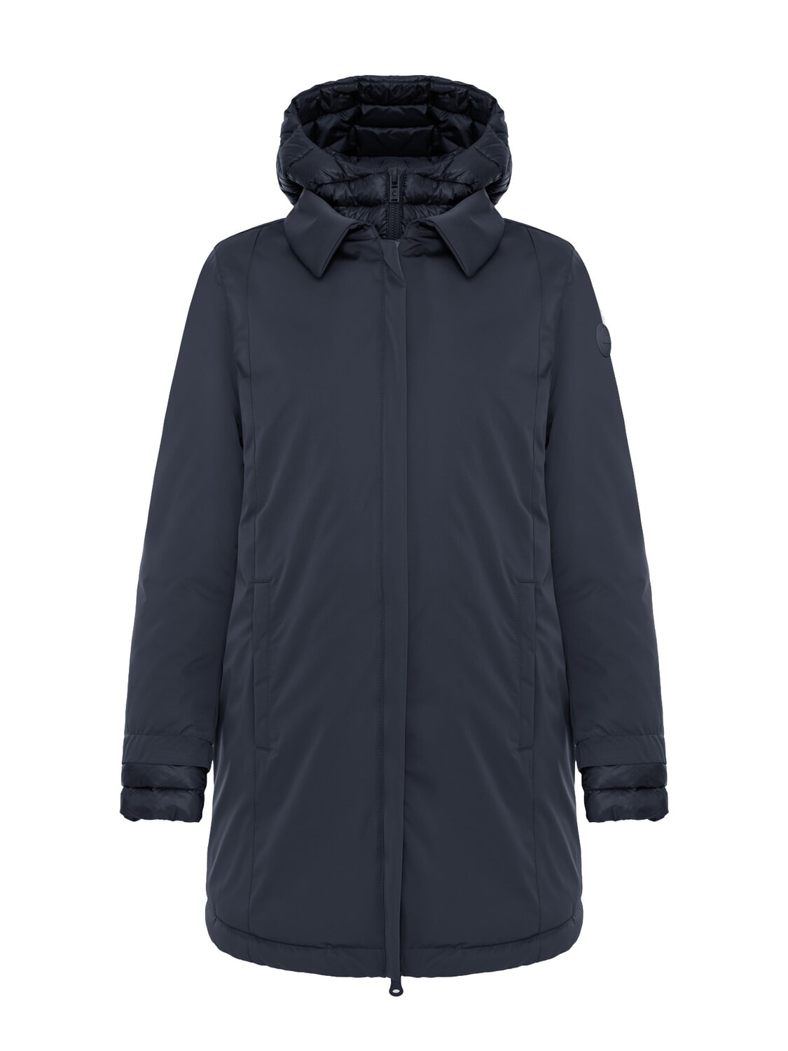 SURROUNDING Lange, wattierte Jacke mit Kapuze