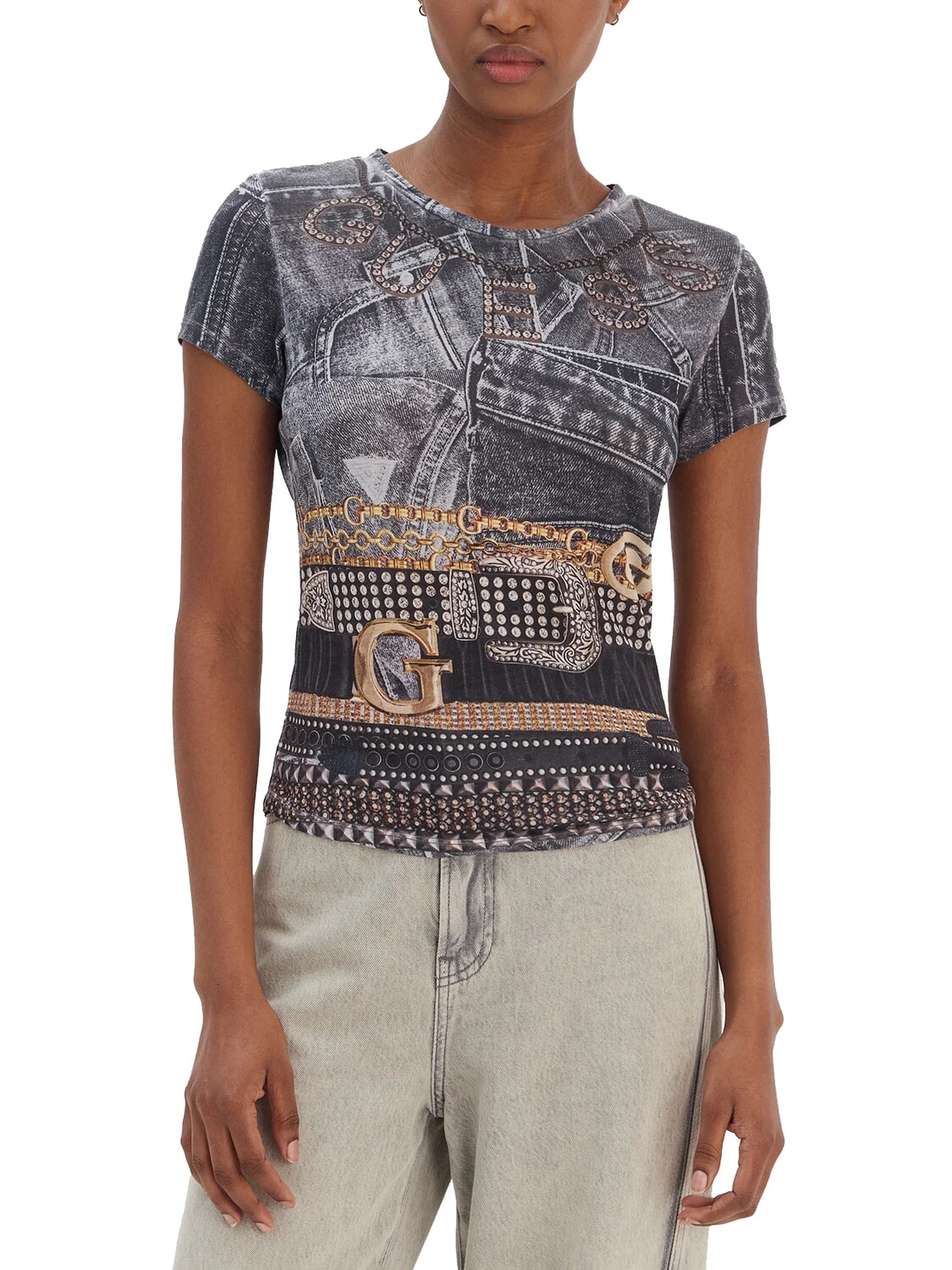 BELT WRAPPED Schmal geschnittenes T-Shirt mit Allover-Print
