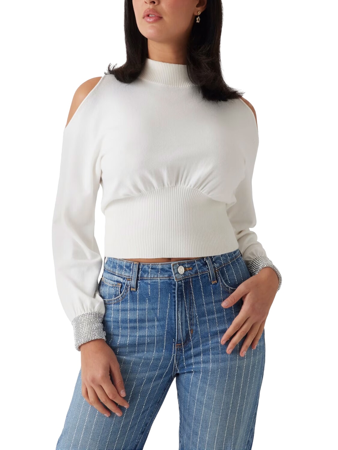 BLING Rollkragenpullover mit ausgeschnittenen Strass-Bündchen