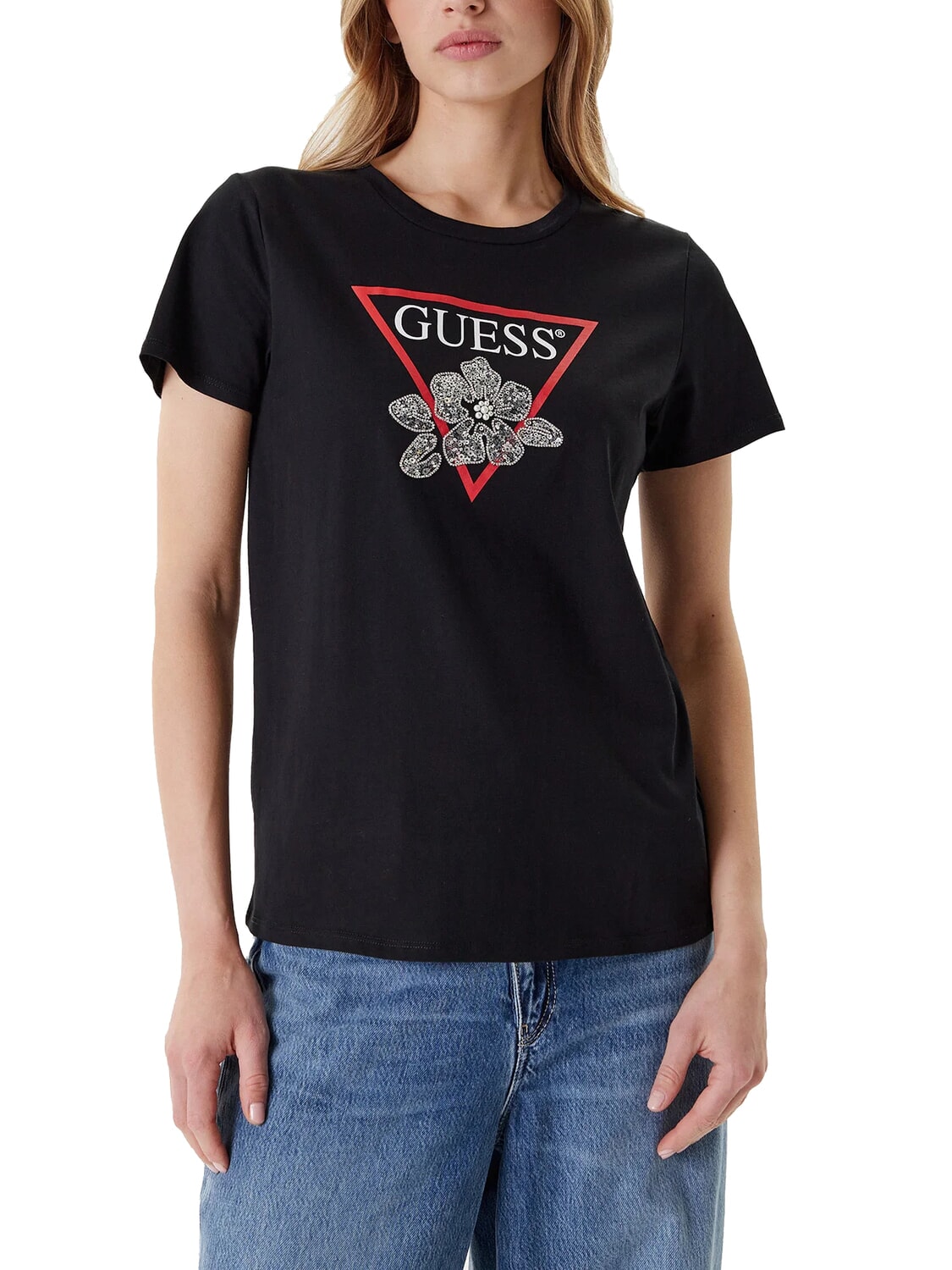 FLOWER BLING T-Shirt mit Druck und Applikation