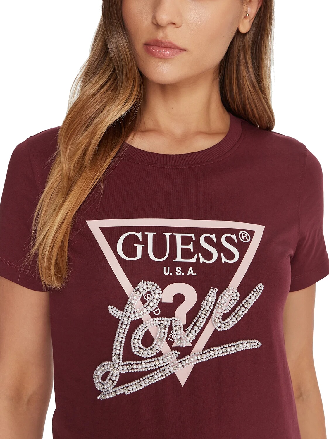 PEARLS LOVE TRIANGLE T-Shirt mit Print und Applikationen