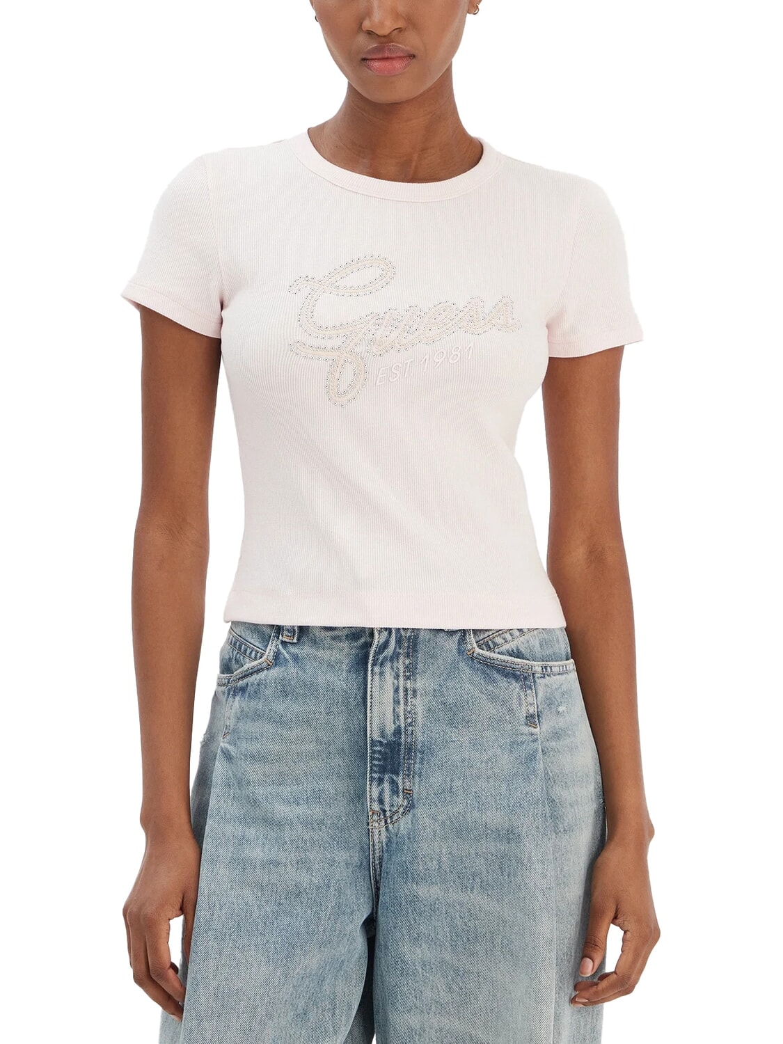 STUDS SCRIPT Schmal geschnittenes Kurzarm-T-Shirt
