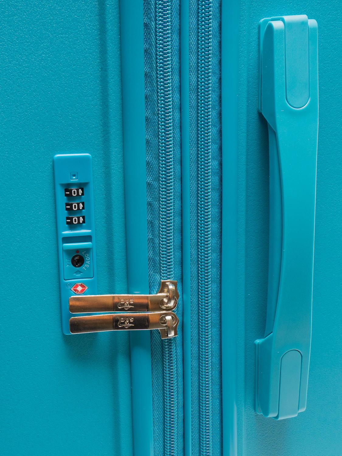 - Reißverschluss mit dreistelligem TSA-Zahlenschloss (erforderlich für Flüge in die und aus den USA)
