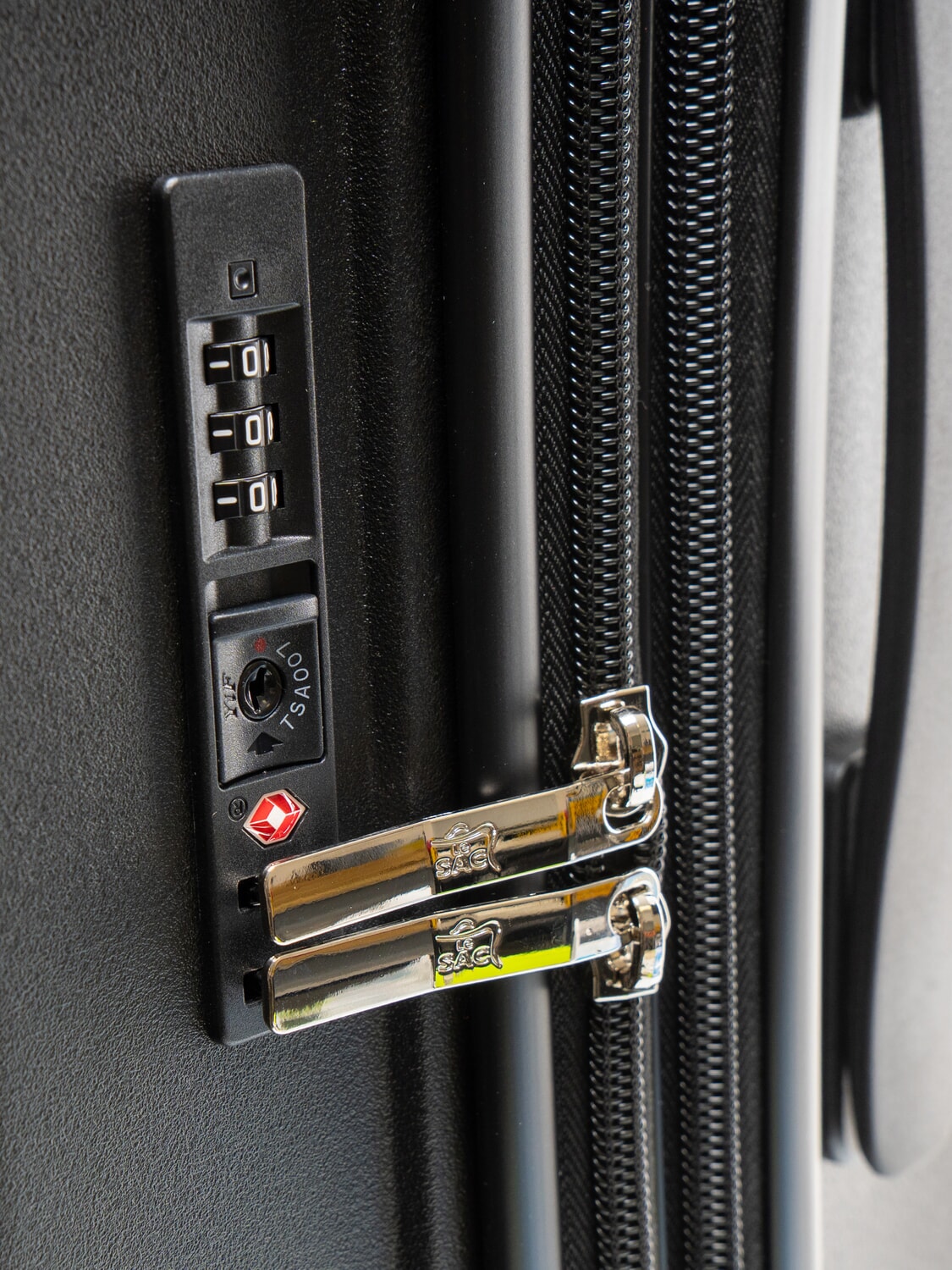 - Reißverschluss mit dreistelligem TSA-Zahlenschloss (erforderlich für Flüge von und in die USA)