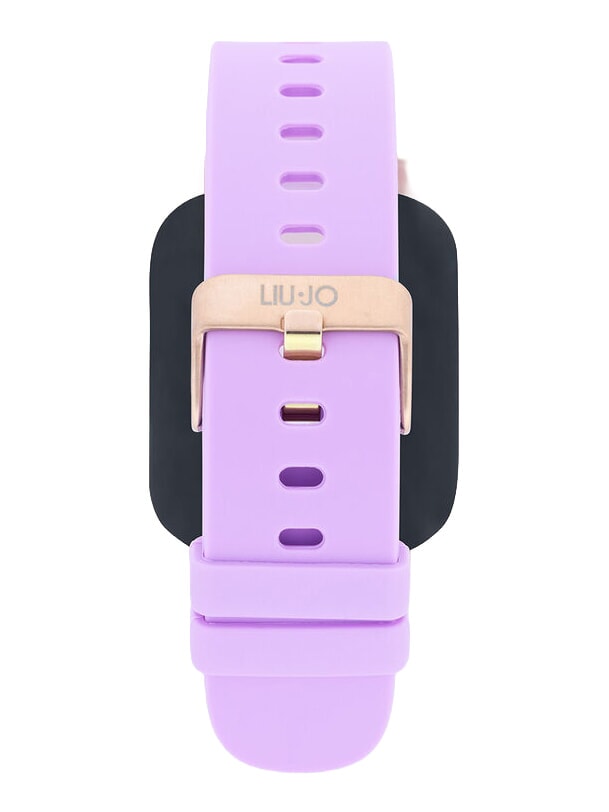 Das Armband ist aus violettem Silikon gefertigt.