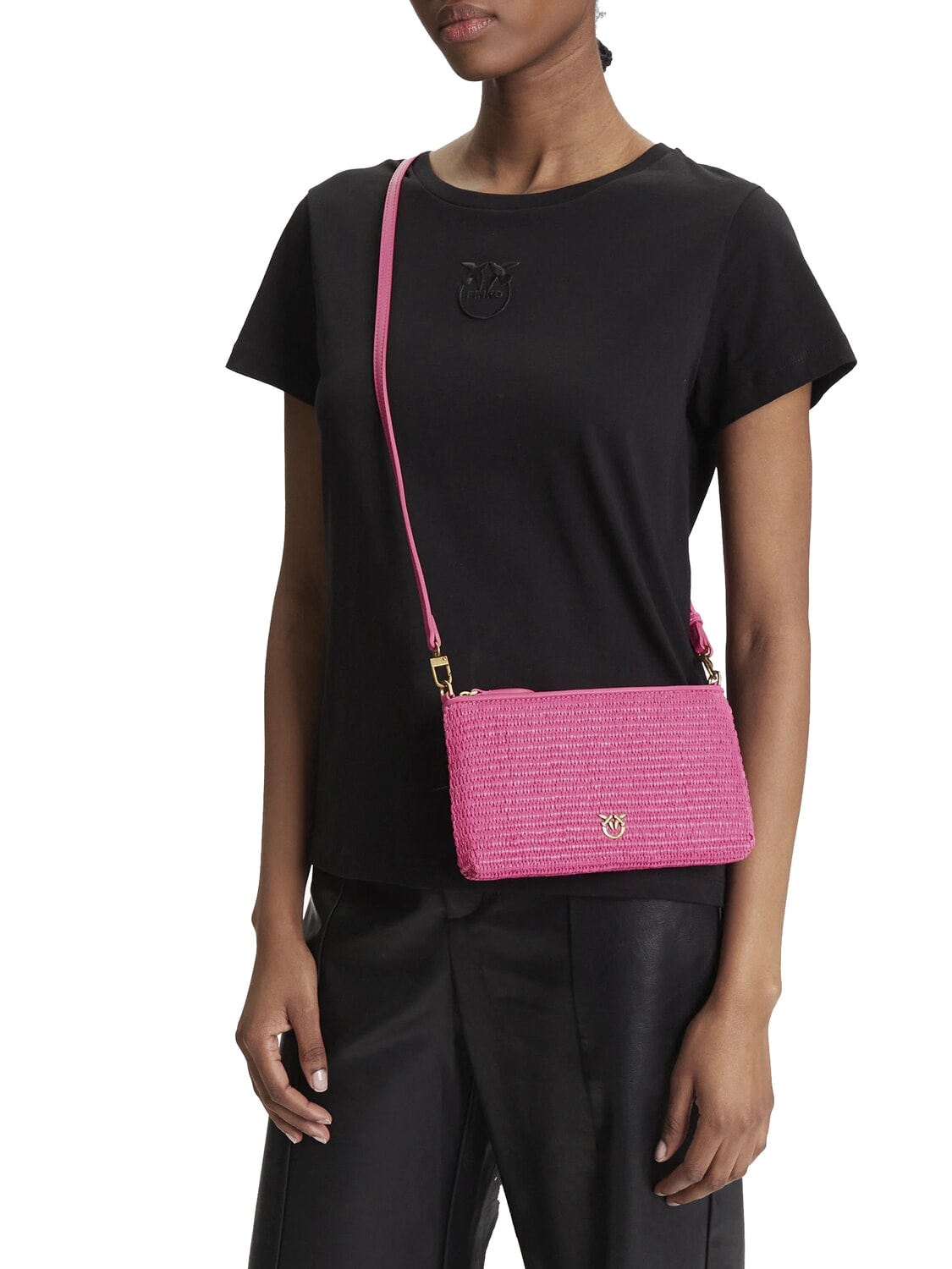 FLAT Clutch aus Raffiabast mit Schultergurt