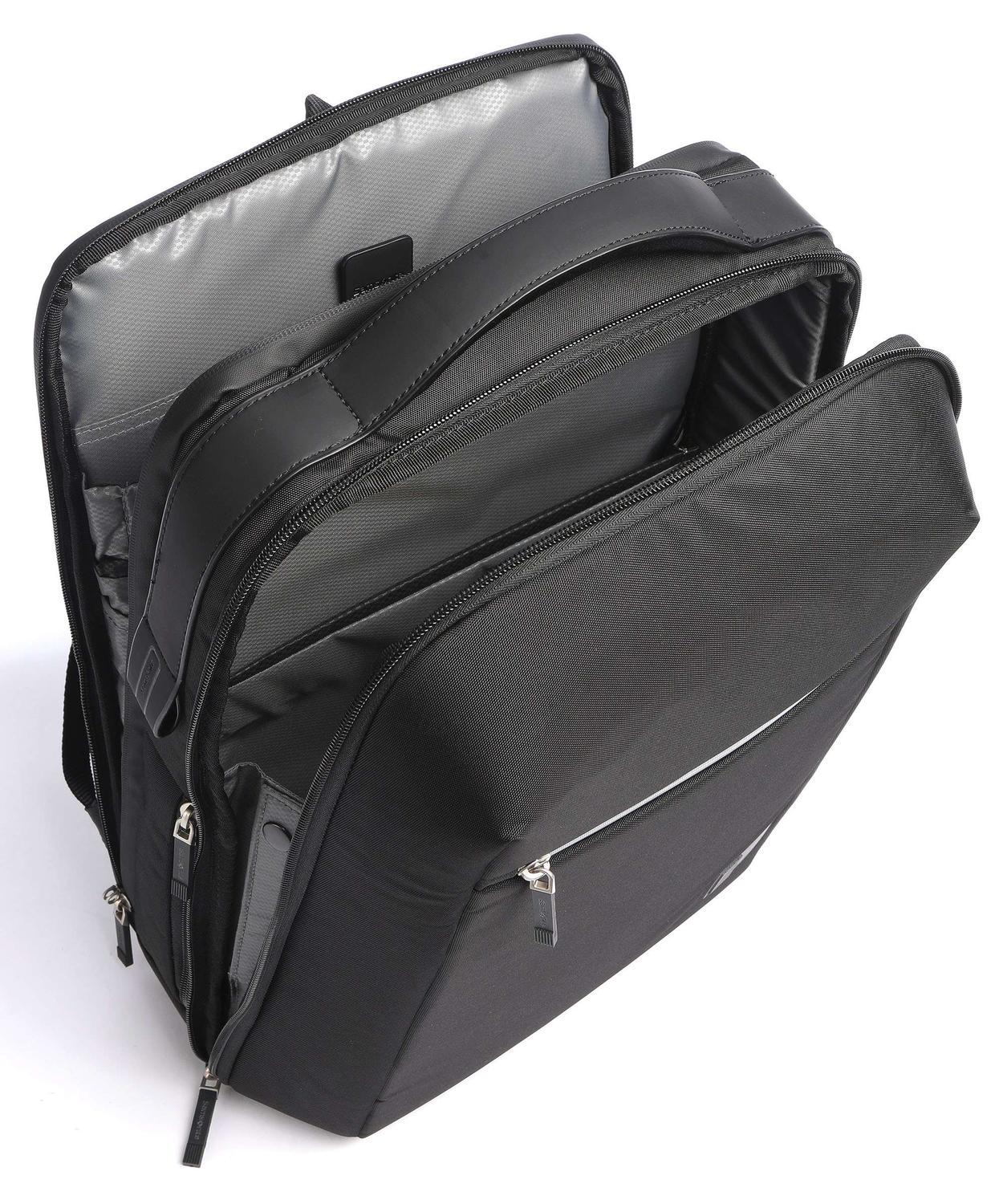 - Easy Pass-System: Ermöglicht die Verwaltung der Ladekabel, die es Ihnen ermöglichen, elektronische Geräte aufzuladen, ohne sie aus der Tasche zu nehmen, wenn Sie die verschiedenen Fächer der Tasche durchqueren