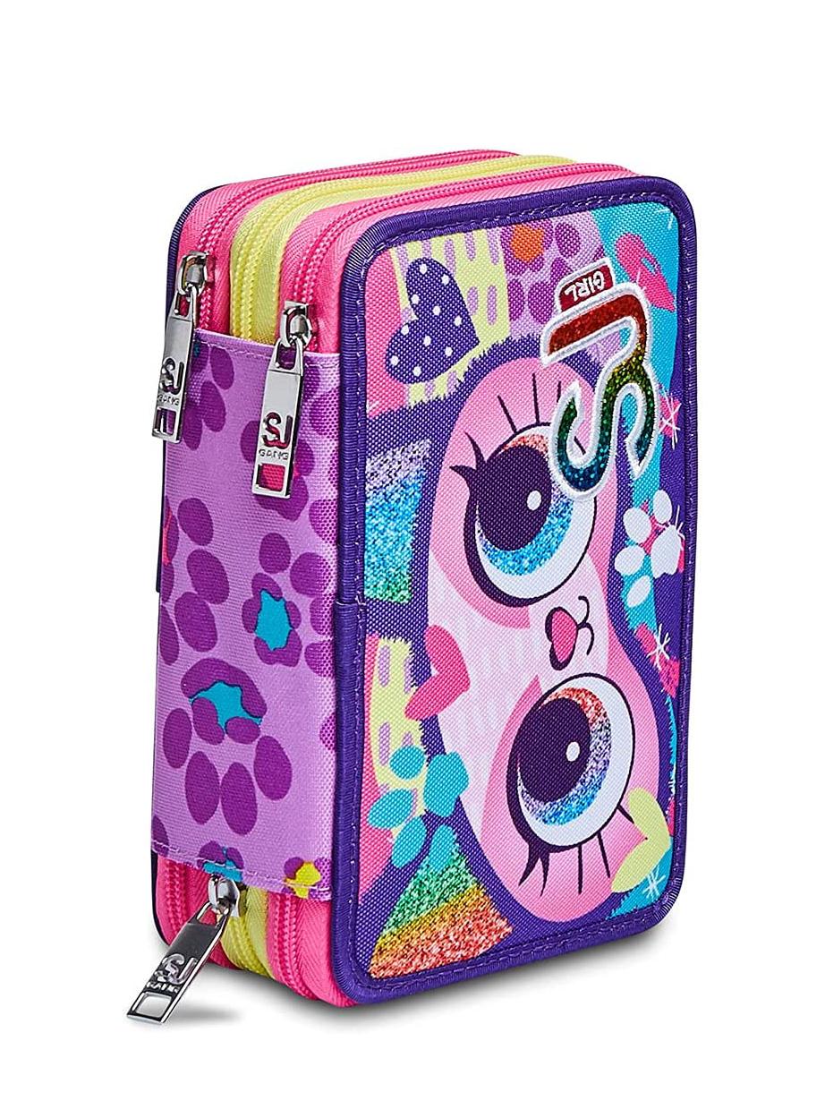 ANIMALI FANTASY SJ GIRL Etui mit 3 Reißverschlüssen, komplett mit Stiften und Schulmaterial