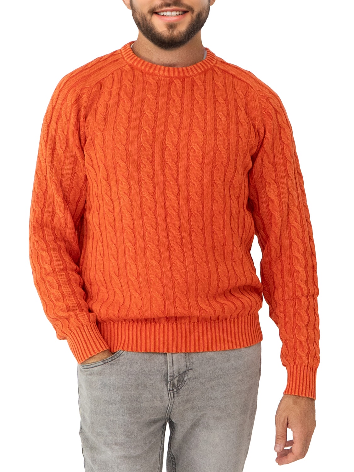 VINTAGE Rundhalspullover mit Zopfmuster